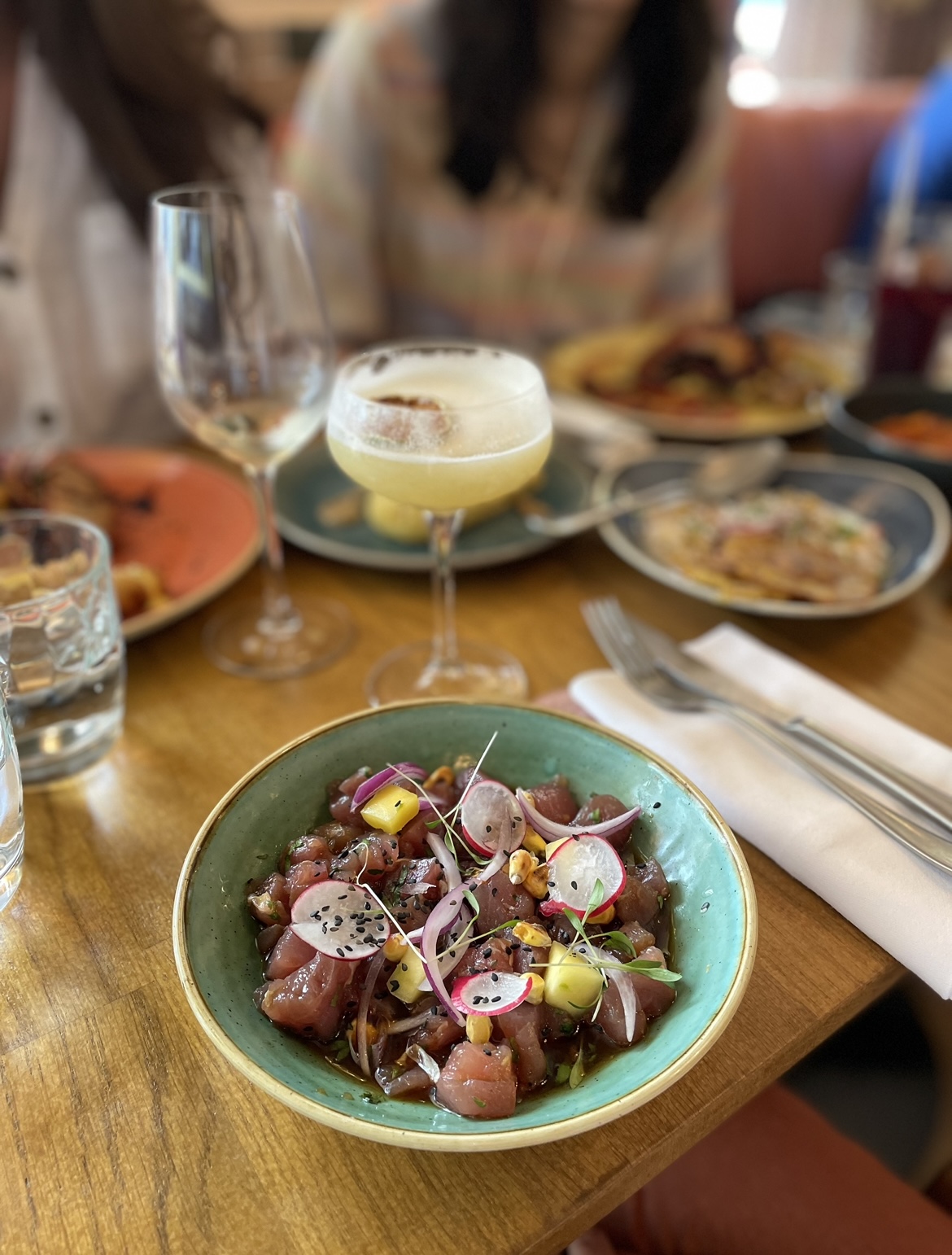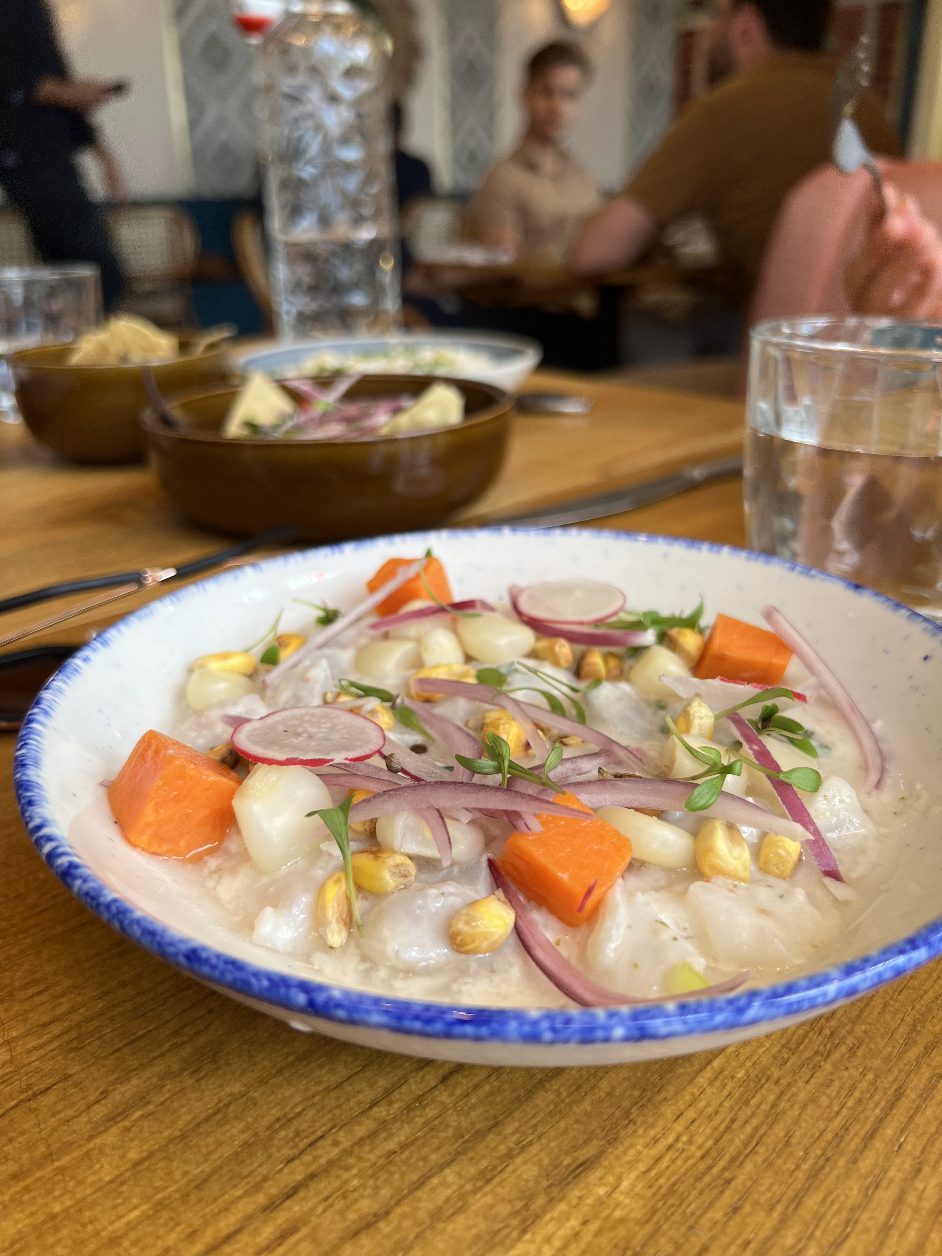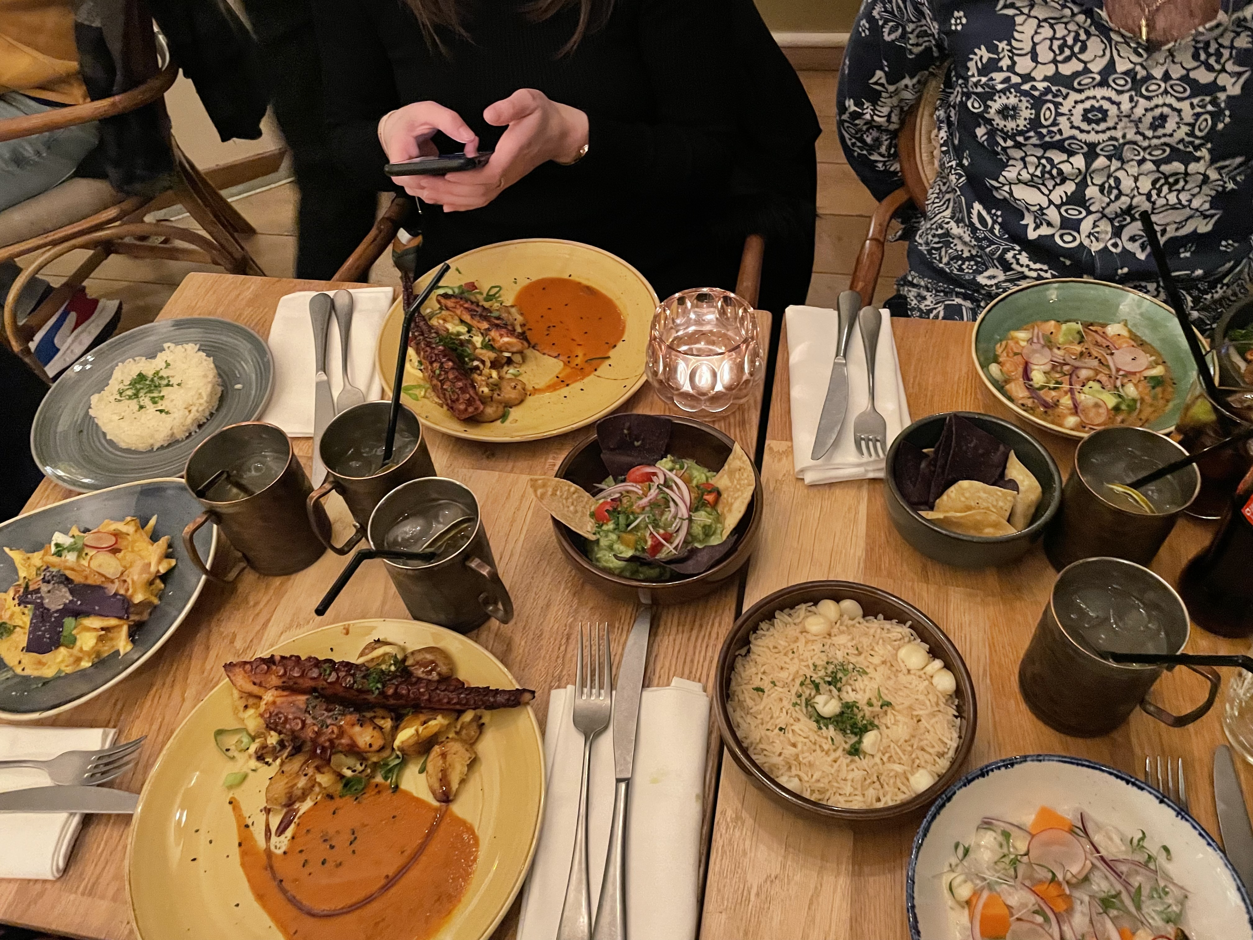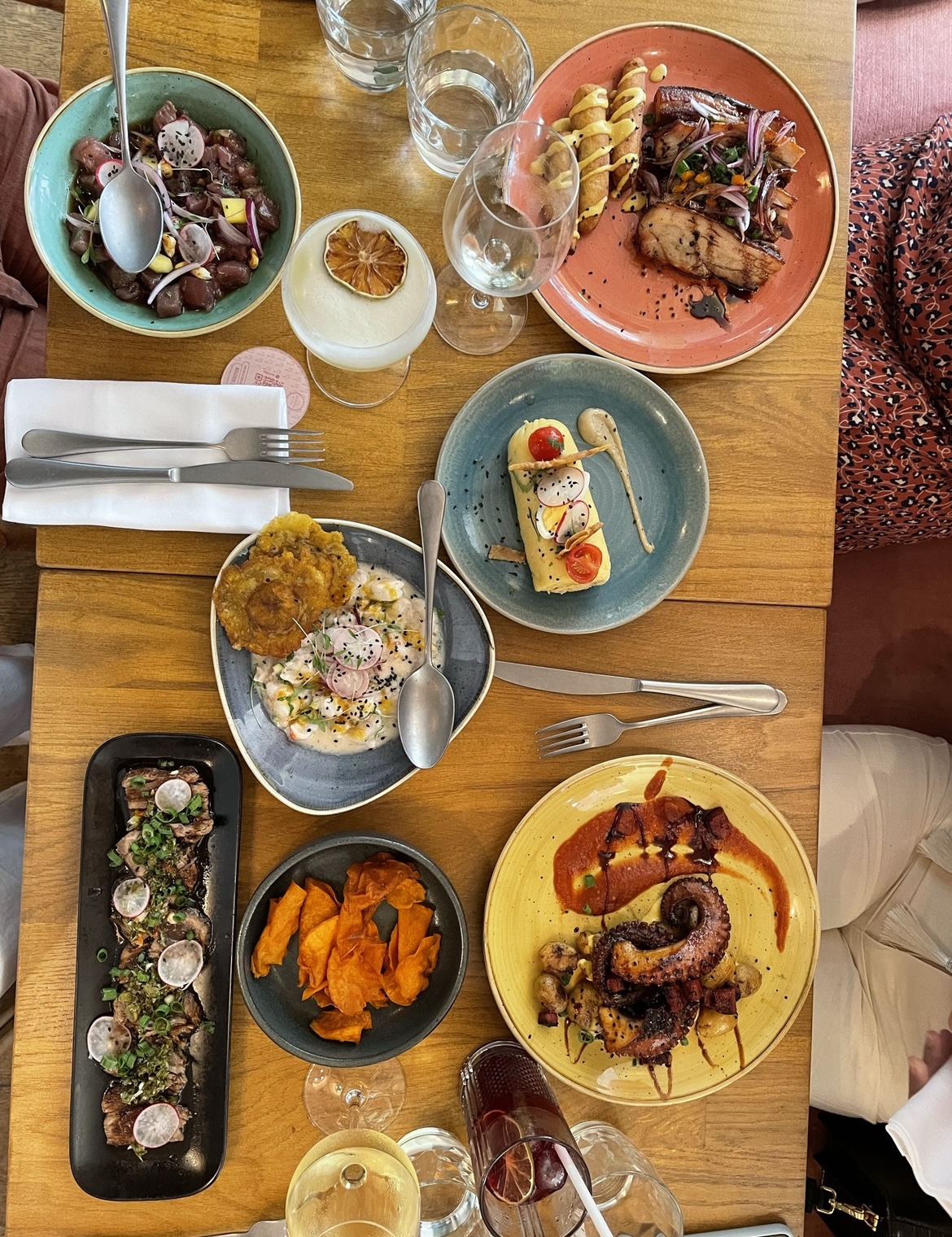 Très joli cadre pour ce restaurant aux influences péruviennes. Salle spacieuse adaptée aux grandes tablées. Personnel sympathique. Les cocktails sont excellents. La nourriture est bonne mais rien d’extraordinaire et les assiettes sont assez légères. Mais c’était bon.
