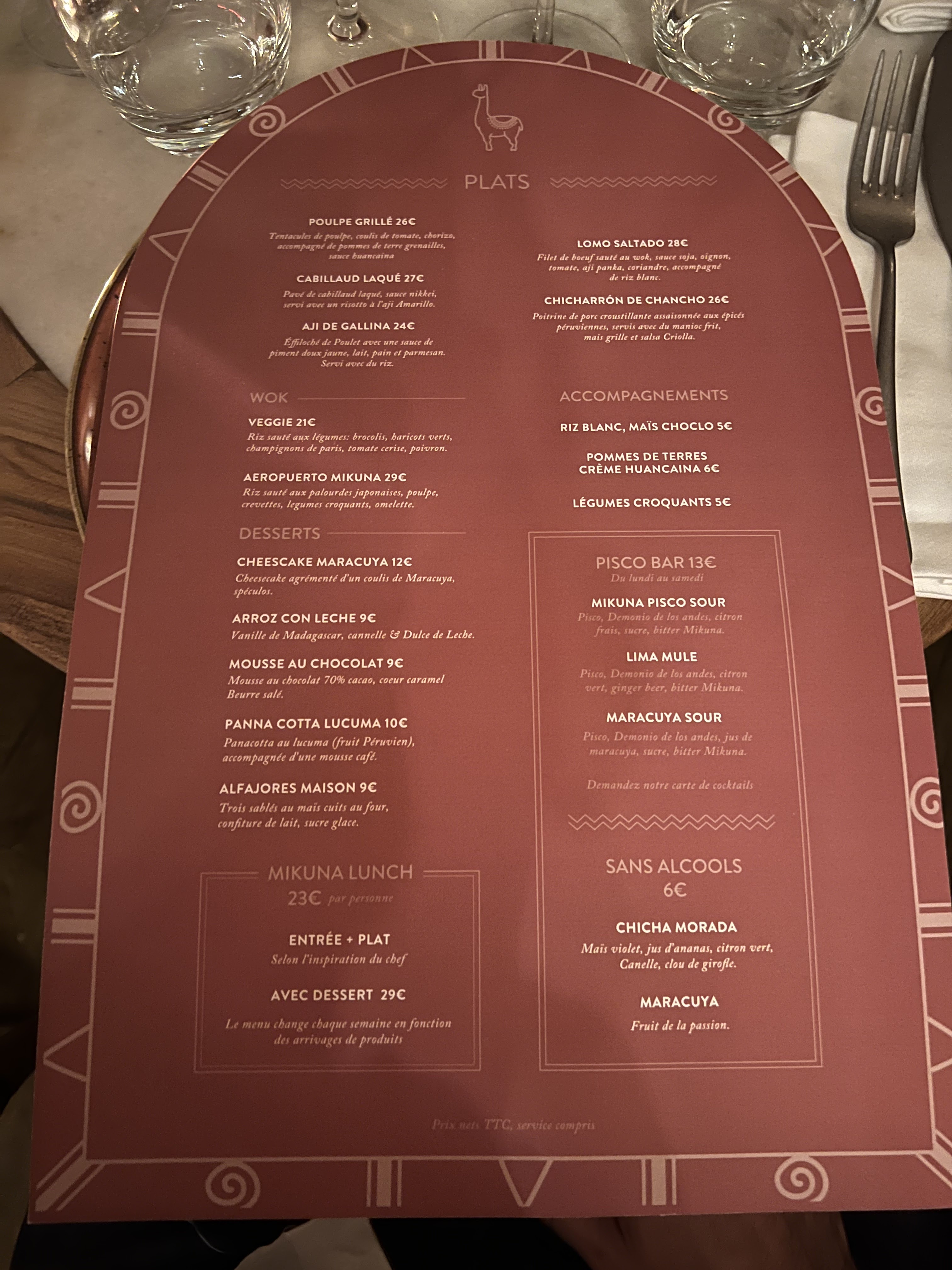 Bon, mais pas fantastique ! La cuisine péruvienne surprend et c'est assez raffiné. Les entrées sont élégantes et fines. Pour le plat l'agneau (à partager) est pas mal, mais pas fantastique, et c'est un peu un avis général. On y mange bien, le service est adorable et le lieu très joli et immersif ! On y retournera pour approfondir la carte, d'autres plats que l'agneau pourrait eux être fantastique !