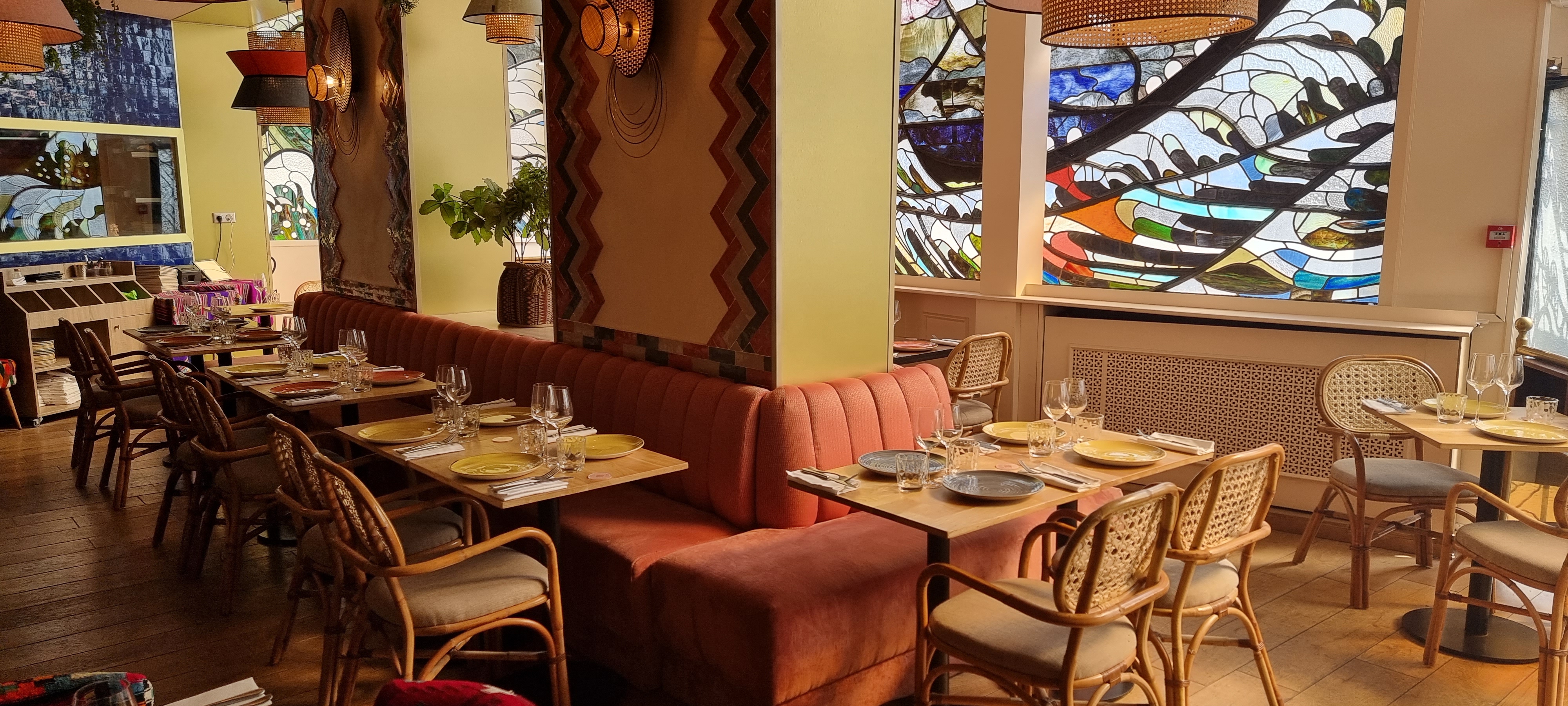 Un très bel endroit, un peu caché mais surtout historique. Il y a un beau bar à cocktail, qui sont très bon d'ailleurs. Le service est agréable. Les plats péruviens sont bons. Avec les ceviches en plat, je conseille de prendre un accompagnement. Les desserts sont aussi bons. La cuisine est bonne et légère. Le lieu mérite d'y revenir et de manger sous les vitraux exceptionnels !