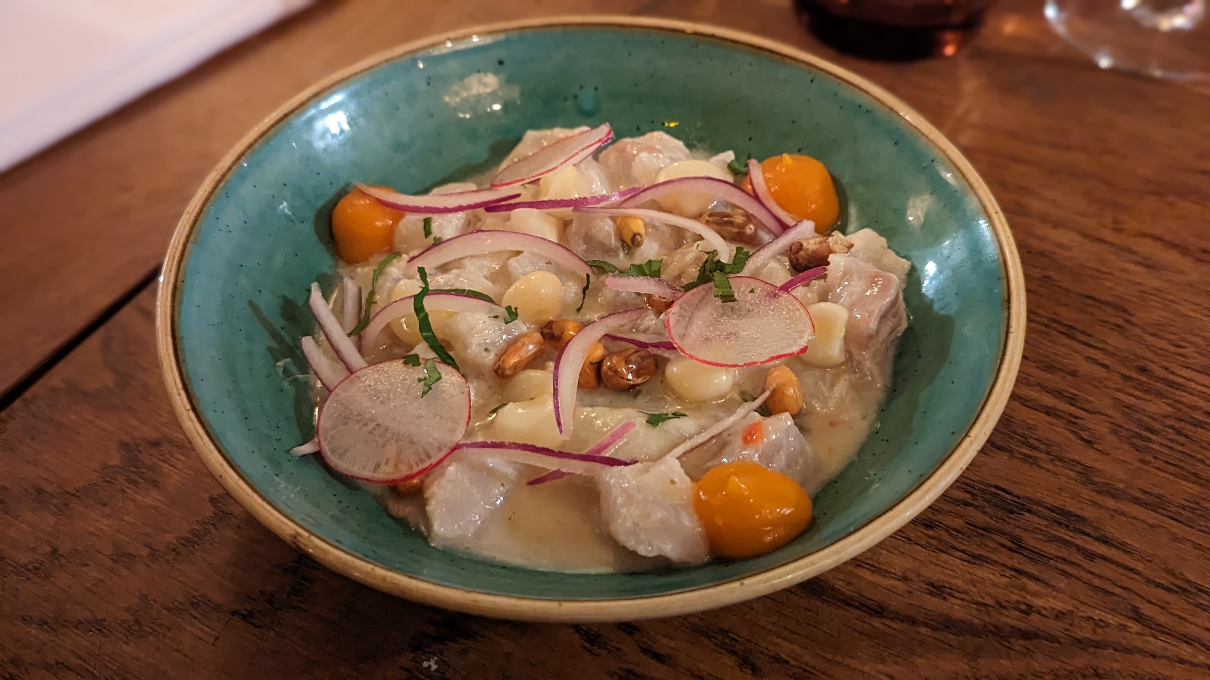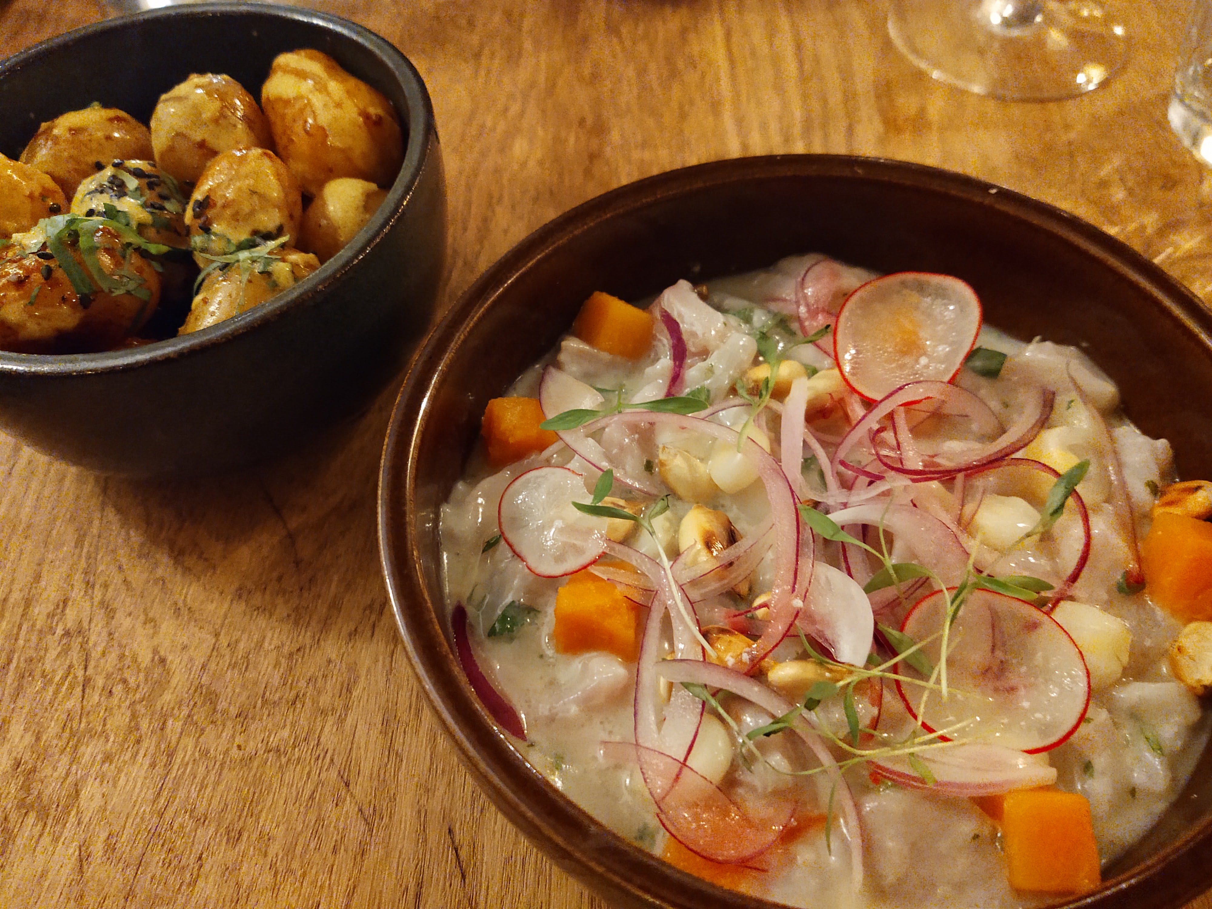 Une cuisine péruvienne de très bon rapport qualité / prix. Nous sommes concentrés sur les ceviches, ils sont tous tres bons et bien présentés. Le tartare de Gambas est un plus original et bien relevé, excellent. Côté dessert, le cheesecake matcha/oreo est très réussi également. Les crèmes sont bizn faites également, même si cela manque un peu de texture. Restaurant a faire !