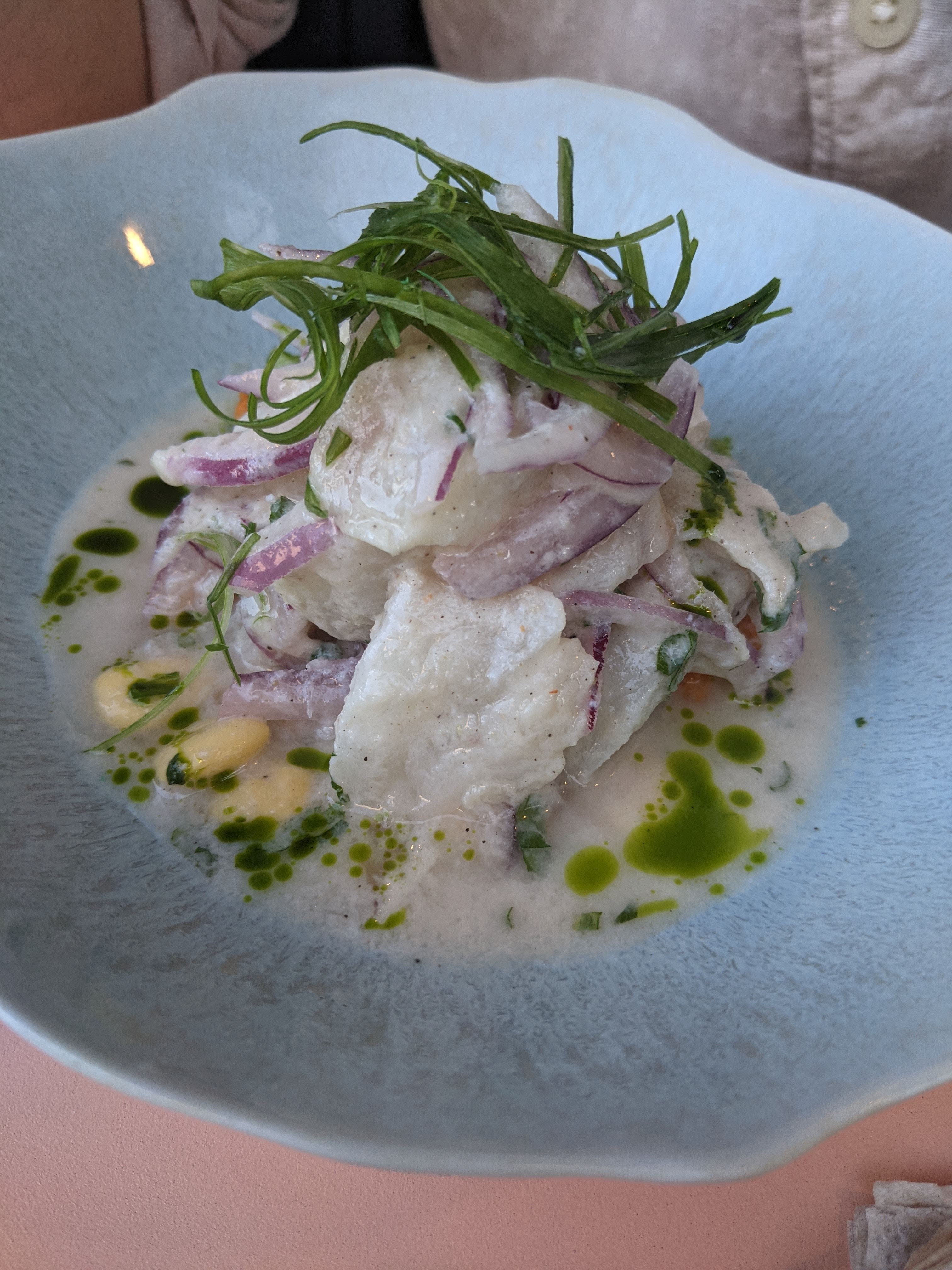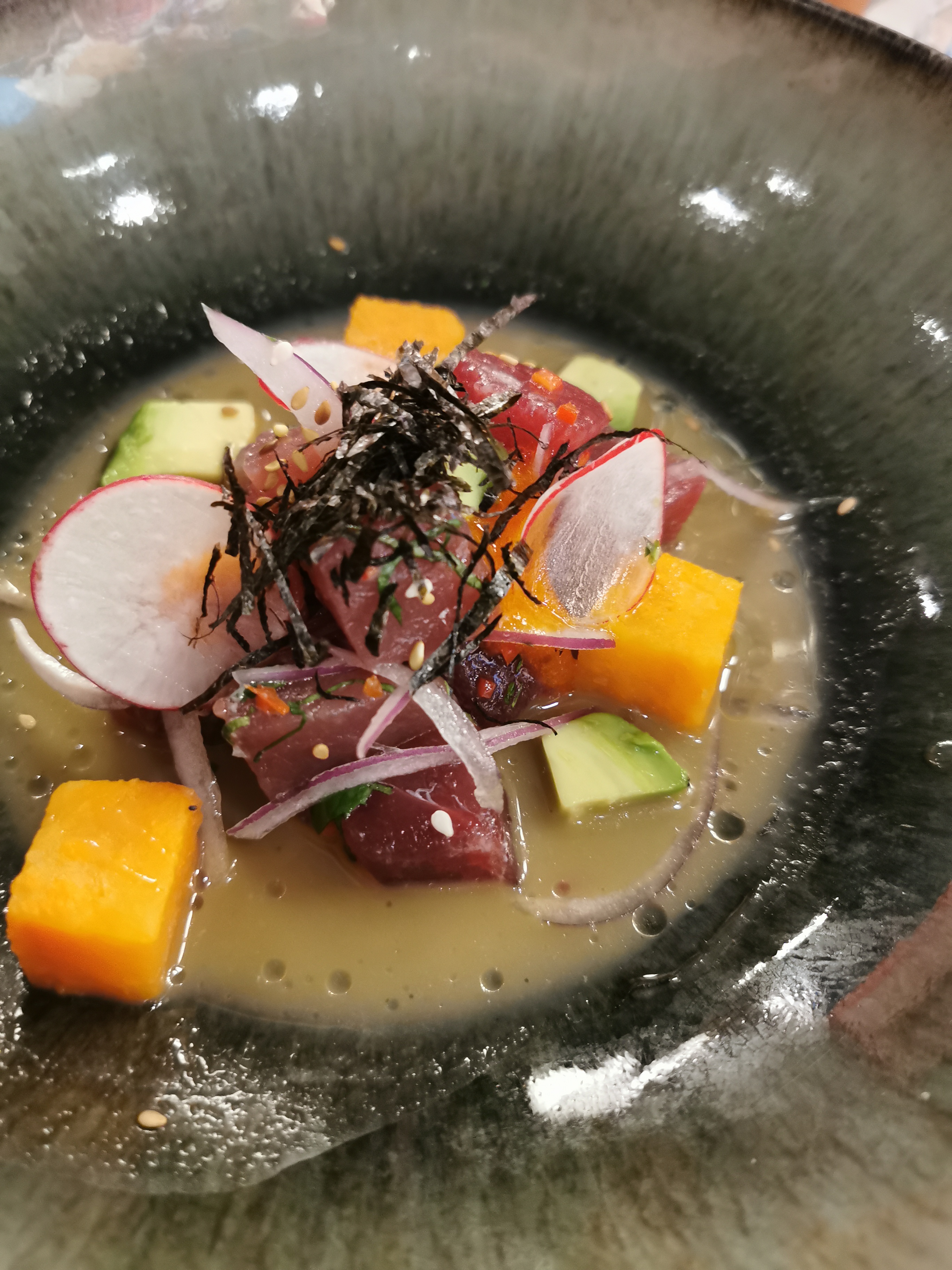 Ceviche de daurade très joli dans l’assiette mais sans aucun intérêt quand on connait le goût que peuvent avoir certains autres bien mieux maîtrisés. Mais le pompon c’est le service extrêmement désagréable. N’ayez pas le malheur de demander du poivre à l’hôtesse blonde excédée et qui roule des yeux
