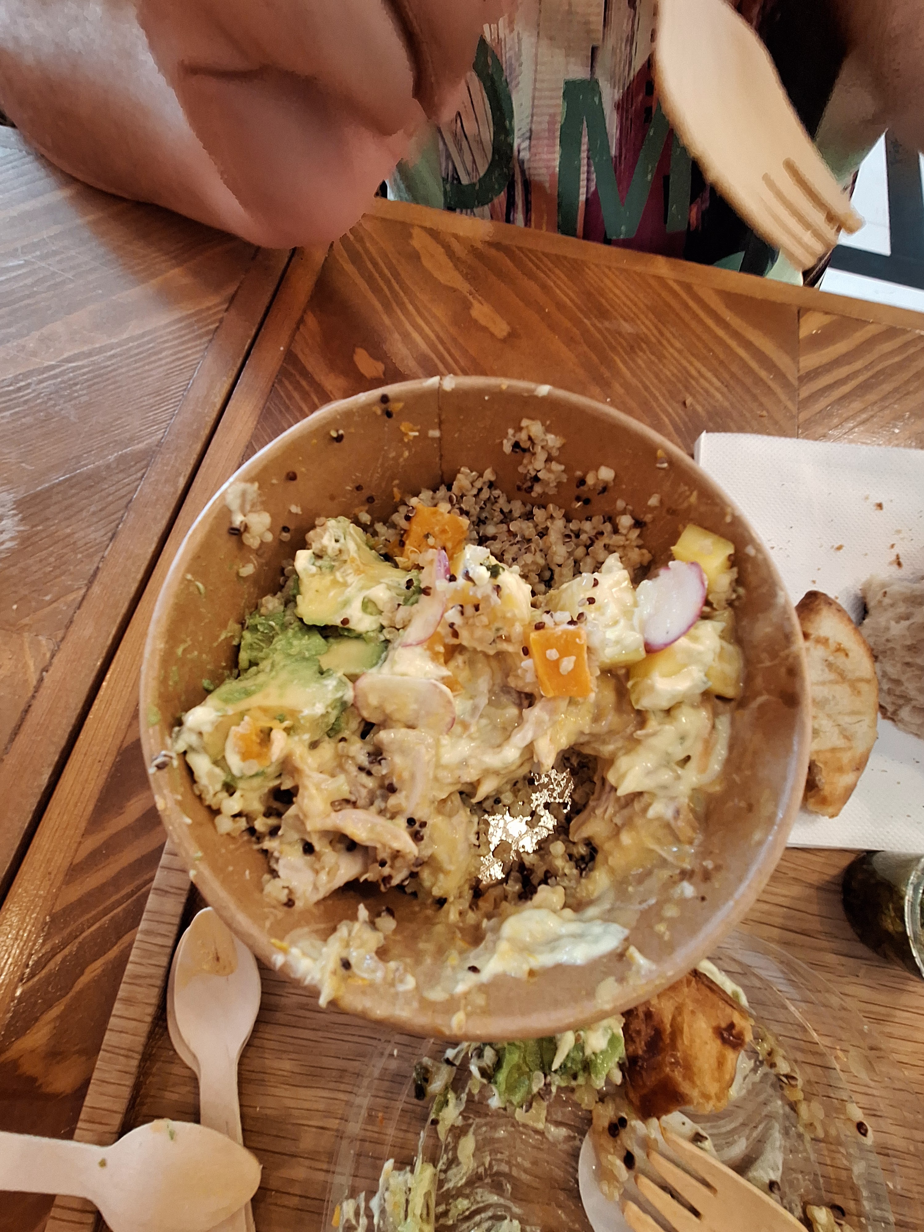 J'ai choisi un plat à emporter : un bowl de saumon avec sauce parfumée à base de coriandre citron, c'était très copieux sur les conseils de Baptiste très sympathique et souriant. Un vrai régal, savoureux😀