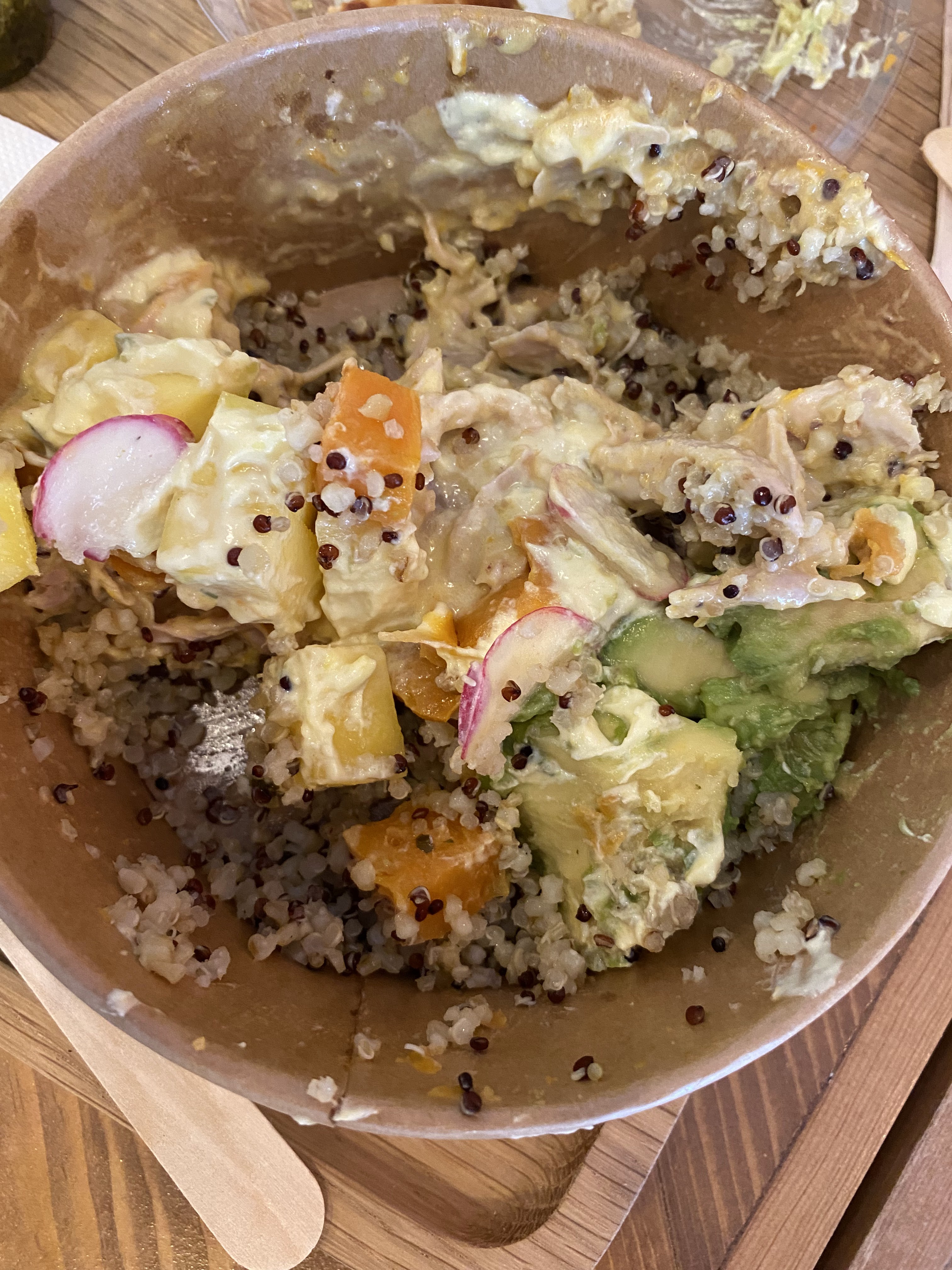 Passant devant par hasard et appréciant la cuisine Péruvienne j'étais obligé d'essayer. J'ai testé le bowl et j'ai sincèrement trouvé qu'ils ont réussi à dépoussiérer le concept qui est aujourd'hui vu et revu. Le bowl façon Pérou c'est validé. Les saveurs proposées se marient à la perfection. En revanche j'ai trouvé dommage la température trop fraîche des ingrédients qui fait perdre du goût. Je me doute que pour des raisons d'hygiène ils n'ont pas le choix mais c'est dommage.