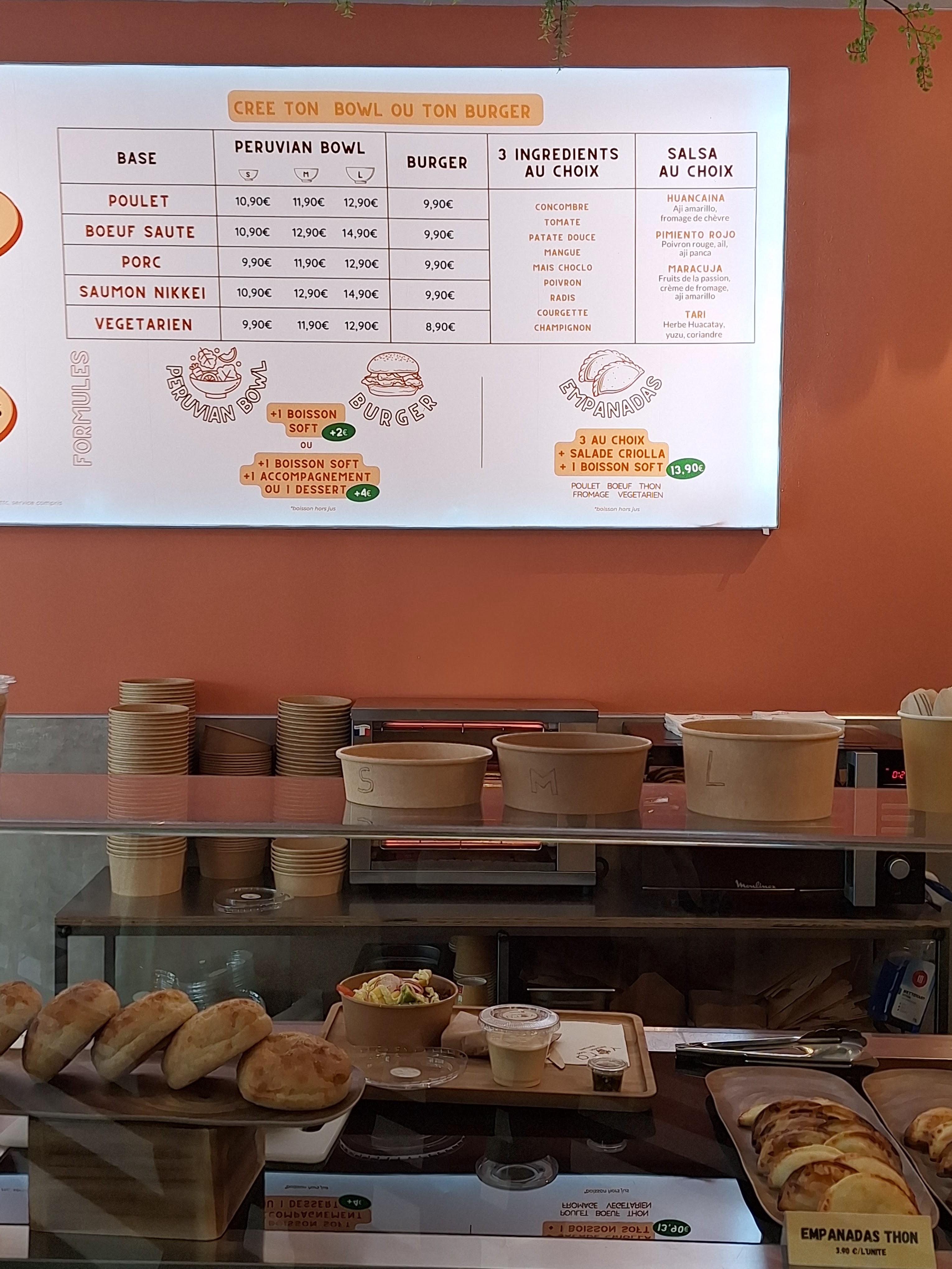 Je suis entré dans le restaurant pour essayer la cuisine péruvienne mais c'était décevant de voir le menu proposé. Ce n'est pas mal, ce n'est tout simplement pas péruvien. J’ai pris une empanada au fromage, c’était ok mais pas génial… Je ne voulais pas essayer les bols car ce n’était pas vraiment ce que je voulais, cependant, ils avaient l’air vraiment bons et sains ! Le personnel était vraiment poli et sympathique et les locaux sont agréables et confortables ! Mettre un score faible car ils font de la publicité comme un restaurant de cuisine péruvienne et ce n’est pas le cas (je suis péruvien). Je ne veux tout simplement pas que les gens pensent que c'est du péruvien authentique.